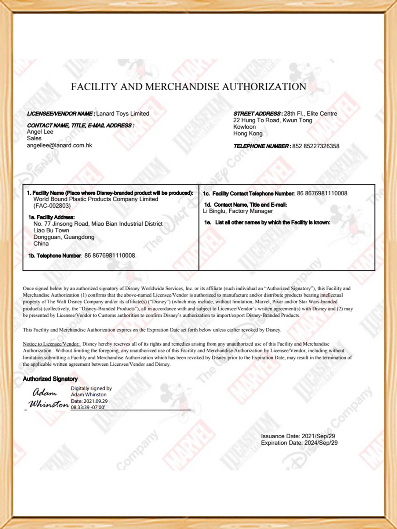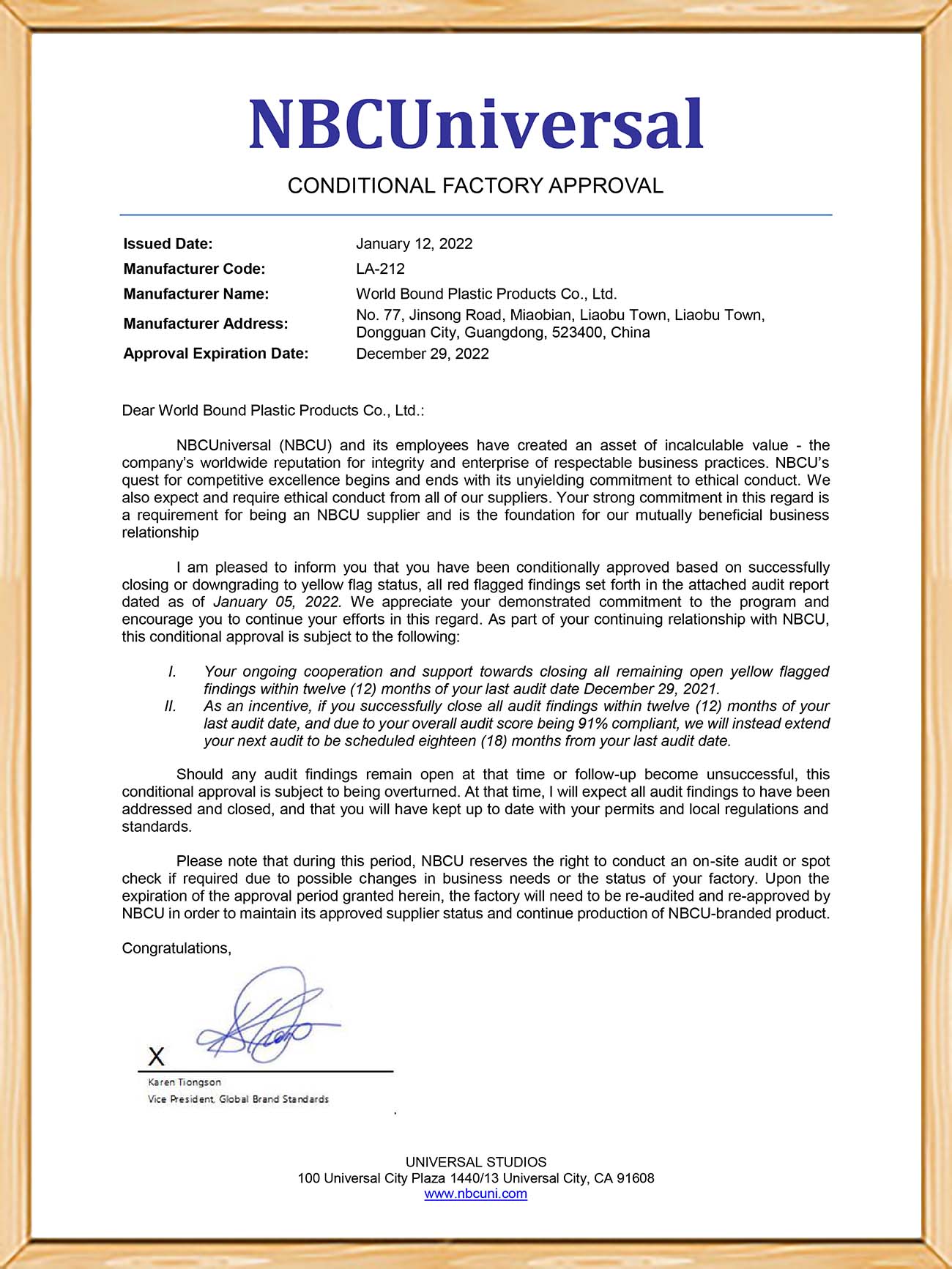 東莞市世邦塑膠制品有限公司玩具事業(yè)部隸屬于世邦集團(tuán),廠房面積27000平方米,我們有BSCI和SEDEX驗(yàn)廠報(bào)告,NBCU環(huán)球認(rèn)證,并通過WALMART, TARGET, HOMEDEPOT, DISNEY等大型美國(guó)商超認(rèn)證,已取得IETP、3C、GSV、ISO9001、SCAN、ICTI、SMETA等多種合格證書。主要產(chǎn)品有模具、玩具、電器配件、醫(yī)療器械配件、家電類配件、電子產(chǎn)品、小家電、寵物用品,為高端品牌提供從產(chǎn)品設(shè)計(jì)、精密模具制造、注塑成型與組裝、售后服務(wù)為一體整套解決方案。有迪士尼授權(quán)認(rèn)證,目前為多個(gè)國(guó)家和海內(nèi)外知名企業(yè)提供禮品定制服務(wù)、代工生產(chǎn)服務(wù)、并成為長(zhǎng)期的合作伙伴,(如:日本萬代、迪士尼、epoch等品牌合作) 世邦集團(tuán)成立于2002年,以智能制造,精密制造為核心,運(yùn)用合作共建,共享,共贏的模式,整合制造上下游供應(yīng)鏈,優(yōu)化全產(chǎn)業(yè)鏈,成為設(shè)計(jì)與創(chuàng)新,服務(wù)與生產(chǎn)為一體的智能智造企業(yè)集團(tuán)。 世邦集團(tuán)旗下設(shè)有8家制造工廠,遍布于東莞、廣州、深圳和越南;2家研發(fā)中心,分布于上海和香港。擁有精密模具制造車間、無塵注塑生產(chǎn)車間、無塵表面處理車間。擁有CNC、鏡面火花車間、各類大中型注塑生產(chǎn)線及壓鑄、精密吹塑生產(chǎn)線、環(huán)保真空飛鋁鍍膜生產(chǎn)線、全自動(dòng)噴油生產(chǎn)線、邦定、SMT貼片、智能COB固晶生產(chǎn)線等數(shù)百臺(tái)先進(jìn)制造設(shè)備。